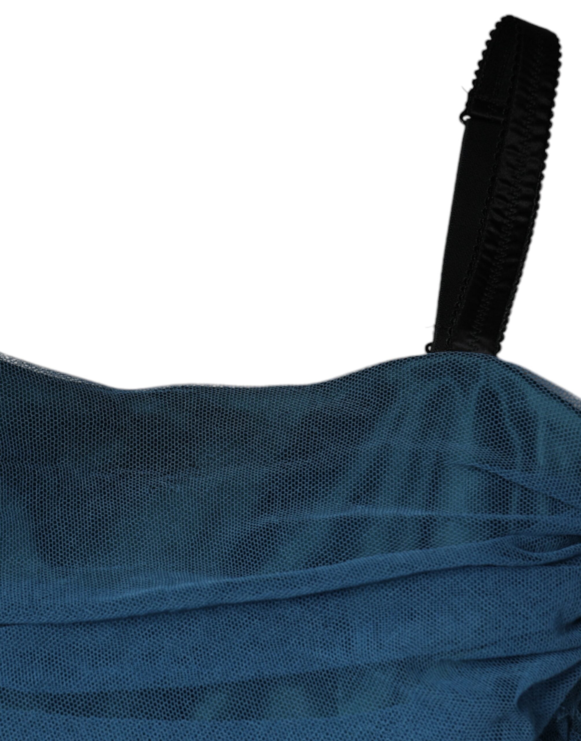 Gorgeous, 100% Authentic Dolce & Gabbana Blue ruched tulle sleeveless bodycon midi dress.